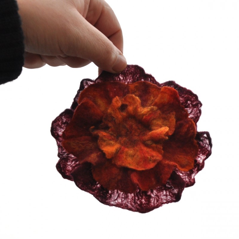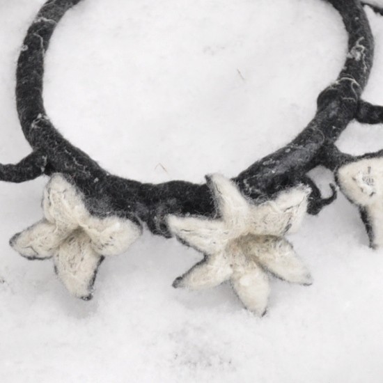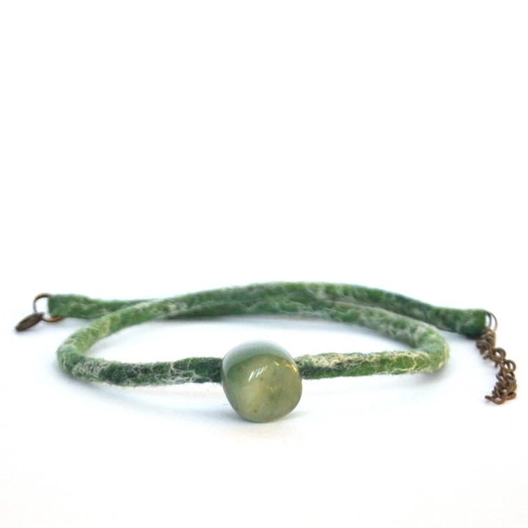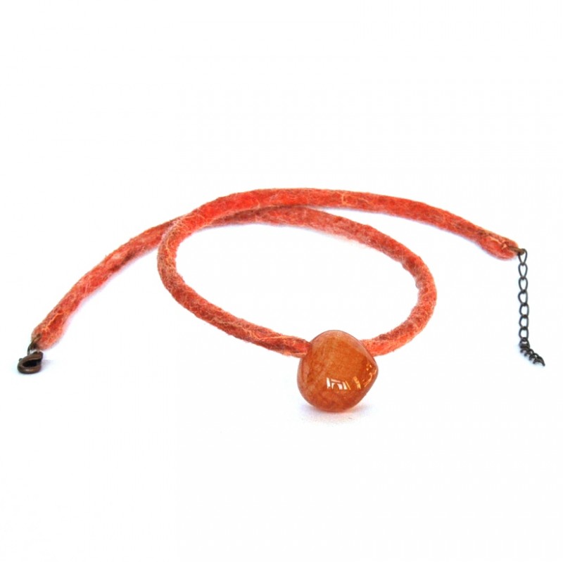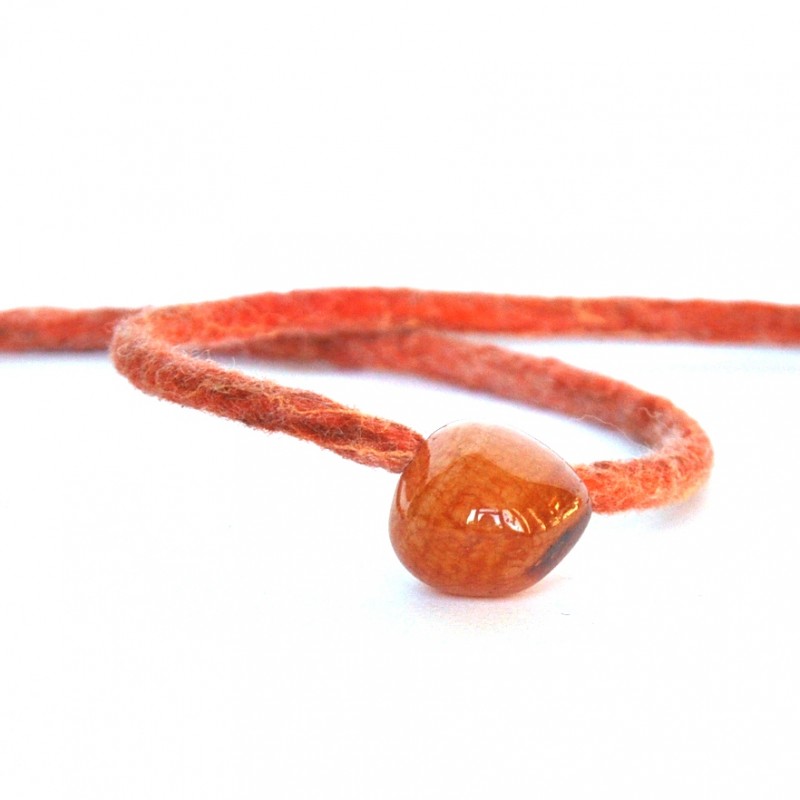 je zavěšený na ručně uplstěné šňůrce z velmi jemného ovčího rouna